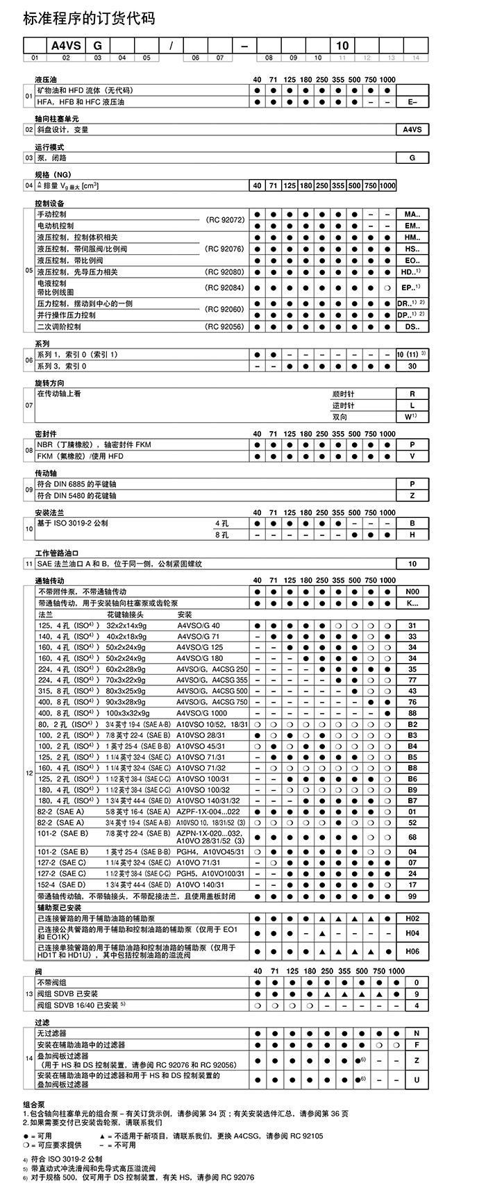 A4VSG系列變量柱塞泵特性